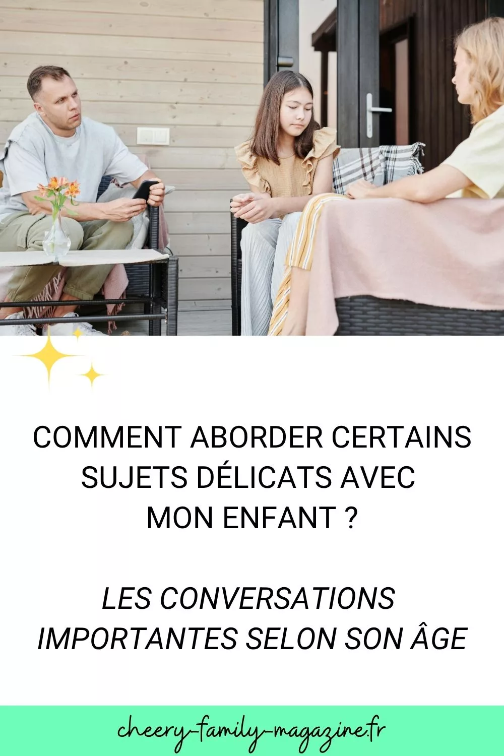 - Familles recomposées : dans une famille recomposée, les conversations peuvent être plus complexes. Il faut parfois aborder des sujets délicats, comme la place de chacun, les différences de règles entre les deux foyers… Sois patient et bienveillant. Ton enfant a besoin de temps pour s’adapter et trouver ses repères.