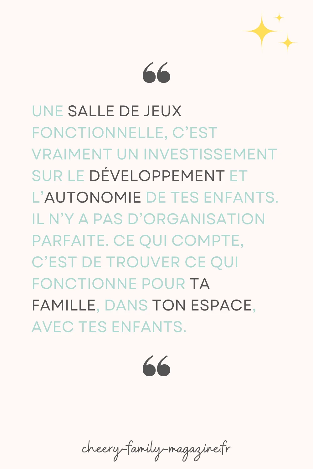N’oublie pas : il n’y a pas d’organisation parfaite. Ce qui compte, c’est de trouver ce qui fonctionne pour TA famille, dans TON espace, avec TES enfants. Commence petit, teste, ajuste. L’important, c’est que cet espace soit vivant et évolue avec eux.