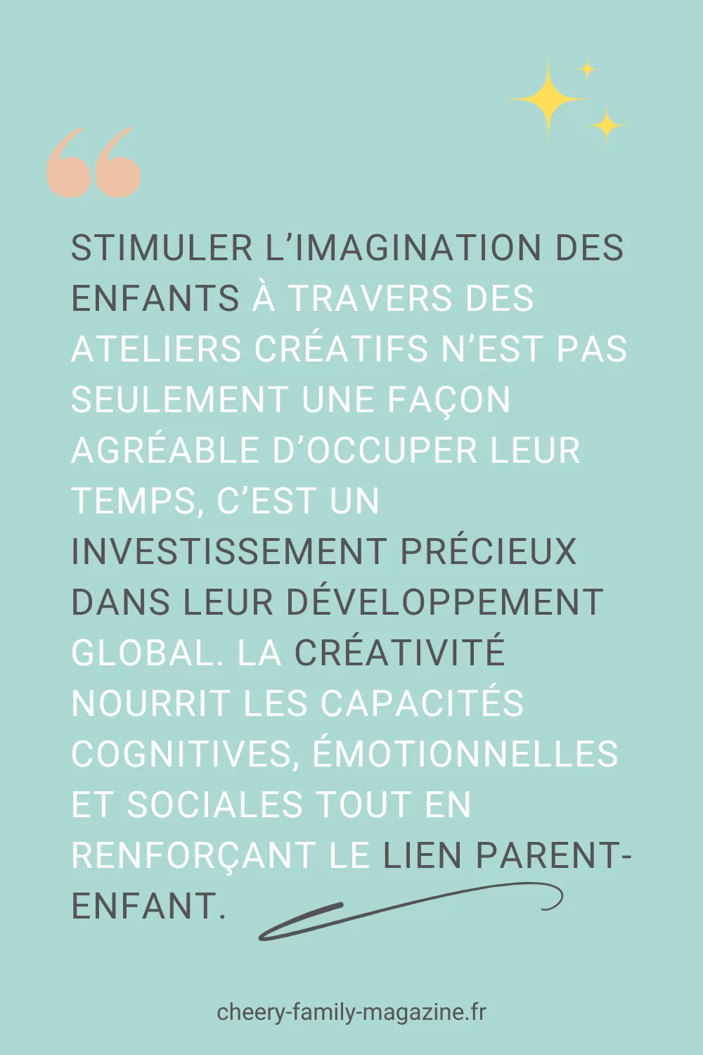 D’après la psychologue pour enfants Marie Lambert, « Permettre à un enfant de créer sans jugement, c’est lui donner l’autorisation d’être pleinement lui-même et de développer sa personnalité propre. »
