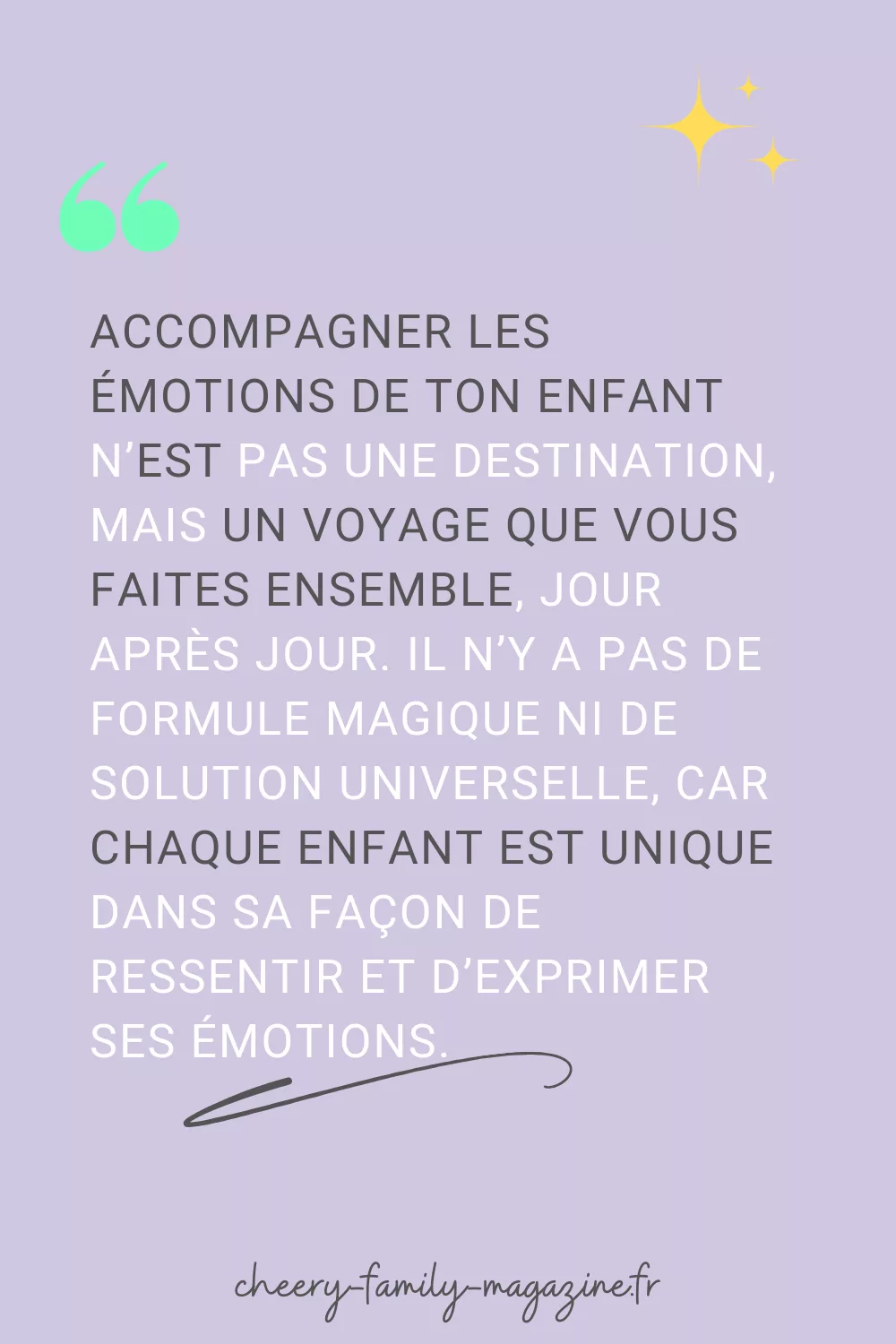 Accompagner les émotions de ton enfant n’est pas une destination, mais un voyage que vous faites ensemble, jour après jour. Il n’y a pas de formule magique ni de solution universelle, car chaque enfant est unique dans sa façon de ressentir et d’exprimer ses émotions.