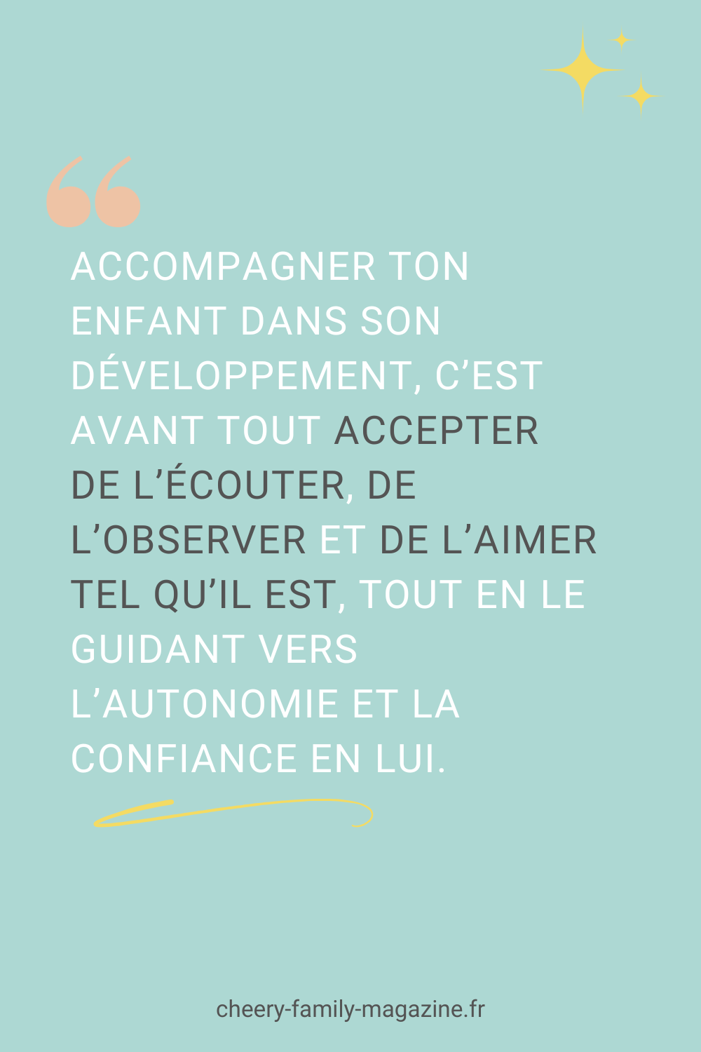 Accompagner ton enfant dans son développement, c’est avant tout accepter de l’écouter, de l’observer et de l’aimer tel qu’il est, tout en le guidant vers l’autonomie et la confiance en lui. Ces années d’accompagnement forment une belle aventure faite de défis et de joies, et ta bienveillance en fait toute la richesse. Avec des valeurs solides, un amour inconditionnel, et un dialogue ouvert, tu lui donnes les meilleures clés pour s’épanouir pleinement à chaque étape de son parcours.