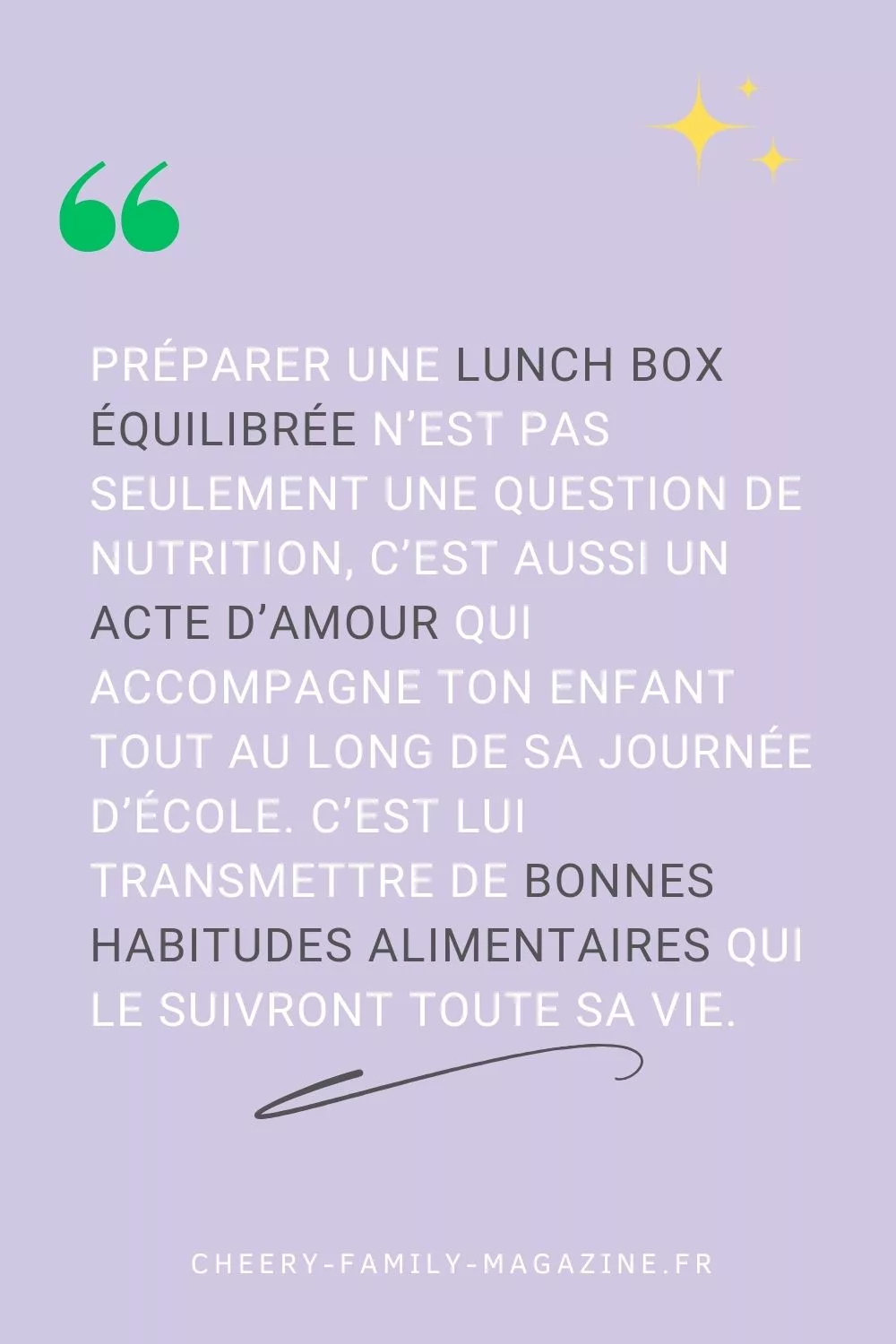 ➡️ Préparer une lunch box équilibrée n’est pas seulement une question de nutrition, c’est aussi un acte d’amour qui accompagne ton enfant tout au long de sa journée d’école. C’est lui transmettre de bonnes habitudes alimentaires qui le suivront toute sa vie.